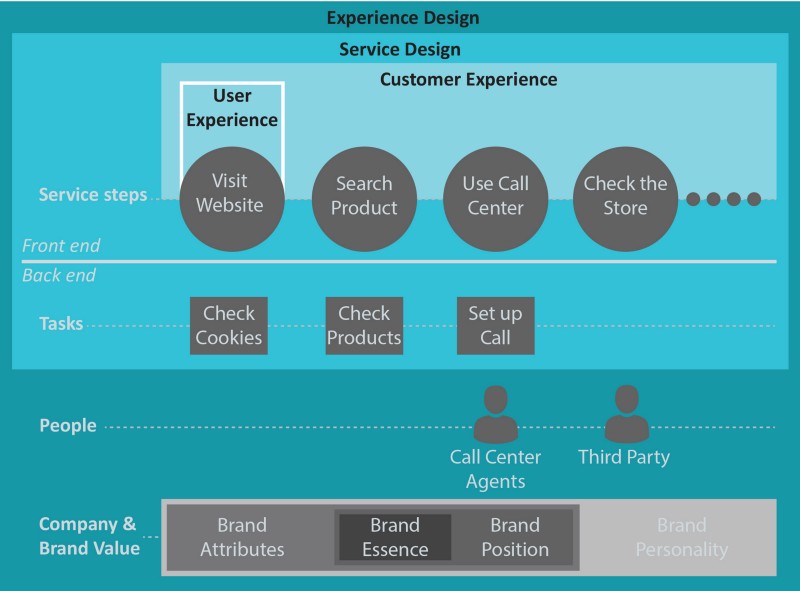 什么是明確的是,體驗設計既不局限于用戶界面的交互,也不是由一個公司提供的單服務。體驗設計成為一個有意識的消費者的設計任務,因此從消費者的產品互動和專注于消費品公司互動模式,考慮所有的公司說,并作為一個實體,但其員工和利益相關者作為最終消費者體驗的關鍵影響因素的思維定勢。